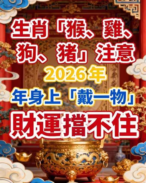 生肖「猴、雞、狗、豬」注意!2026年身上「戴一物」財運擋不住