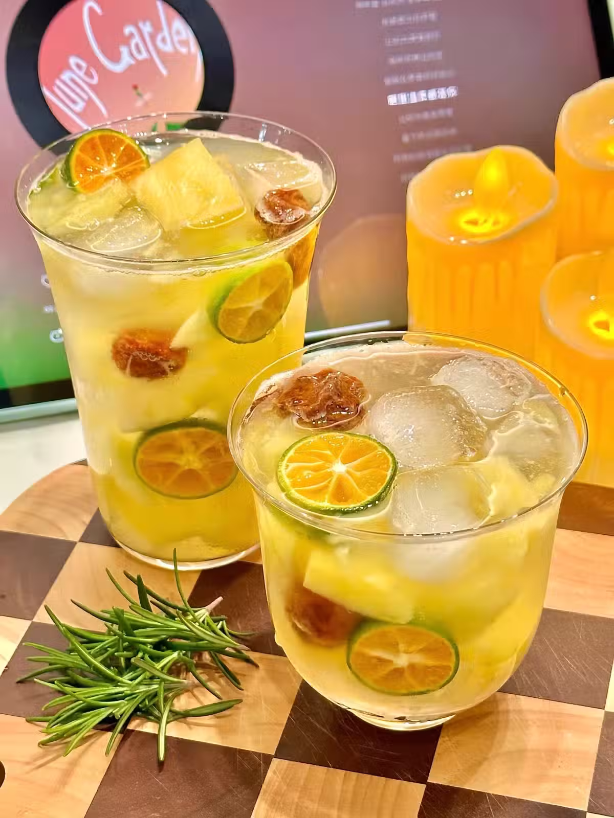🍍食材:菠蘿、話梅、小青檸、氣泡水、冰塊🧊