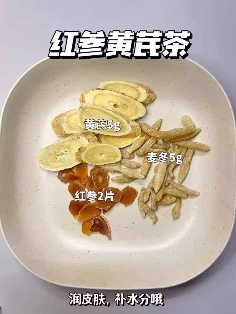麥冬5g,黃芪5g,紅參2片(補氣祛濕,滋養皮膚,補充水分)