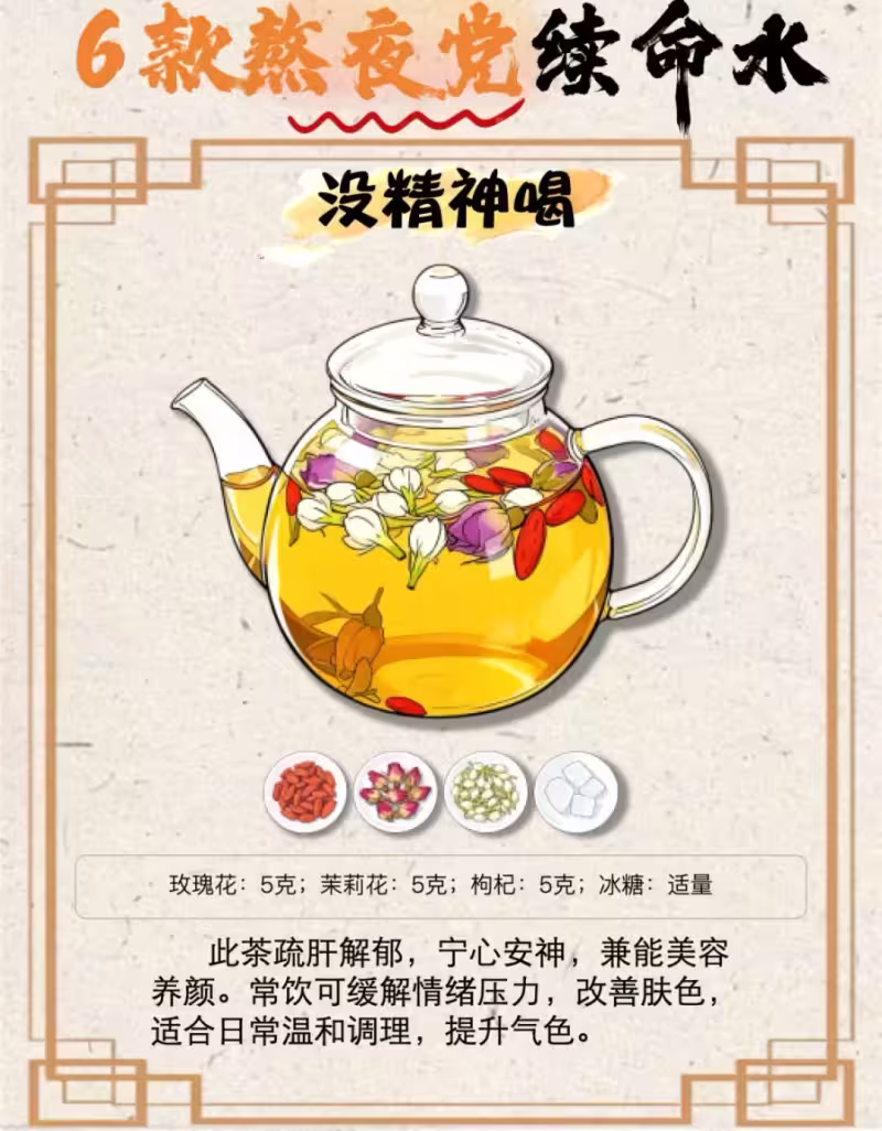 分享6款熬夜黨必備的續命水(養生茶)轉發提醒那個總熬夜的朋友
