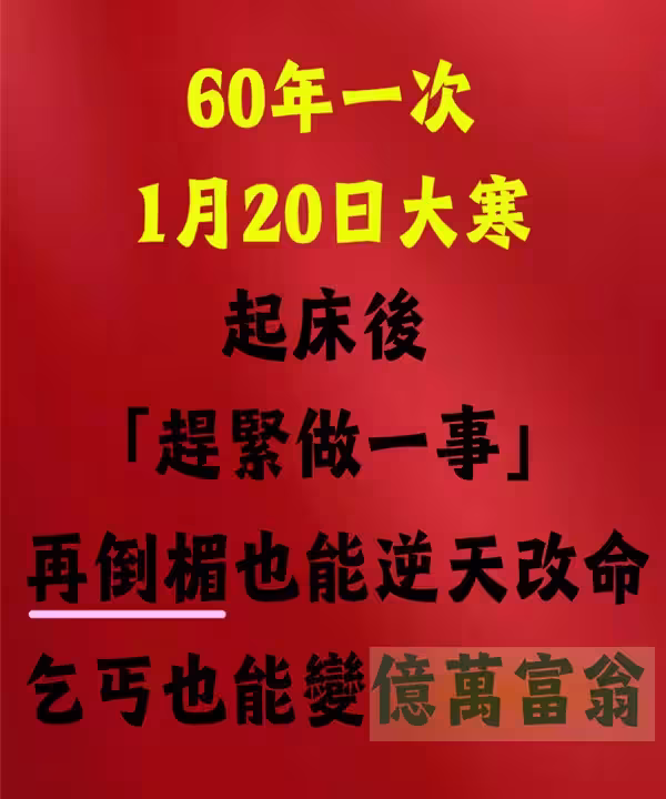 60年一次,就在1月20日「大寒」 起床後「趕緊做一事」再倒楣也能逆天改命, 乞丐也能變富翁!
