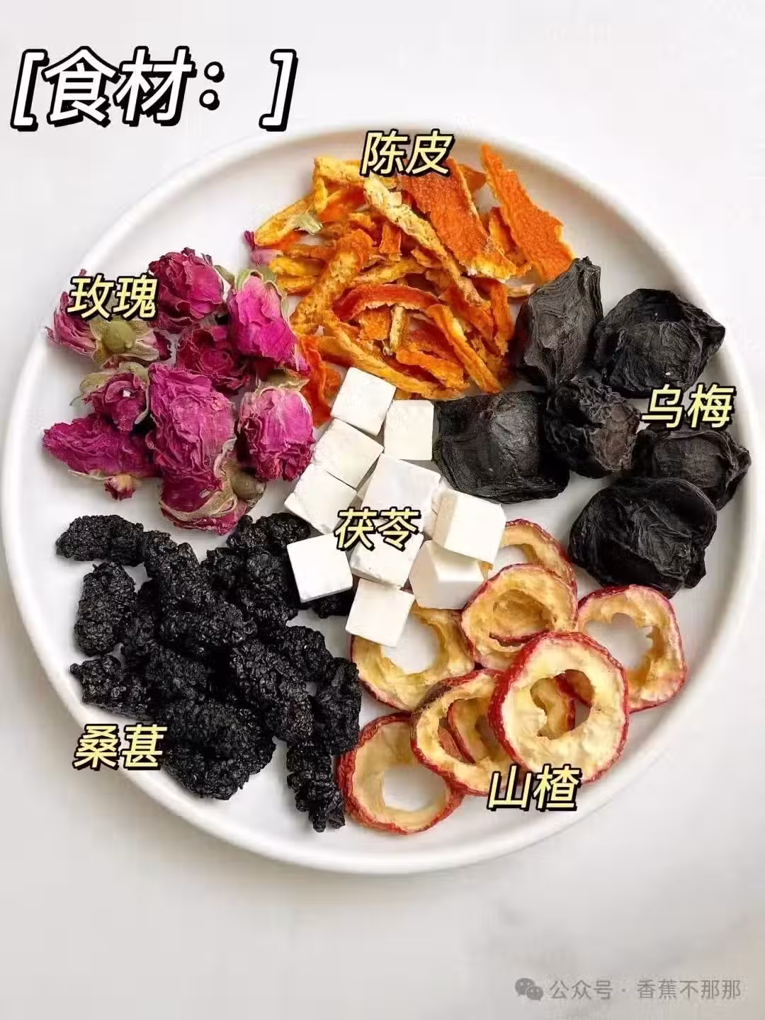 桑葚,玫瑰,茯苓,陳皮,山楂,烏梅。