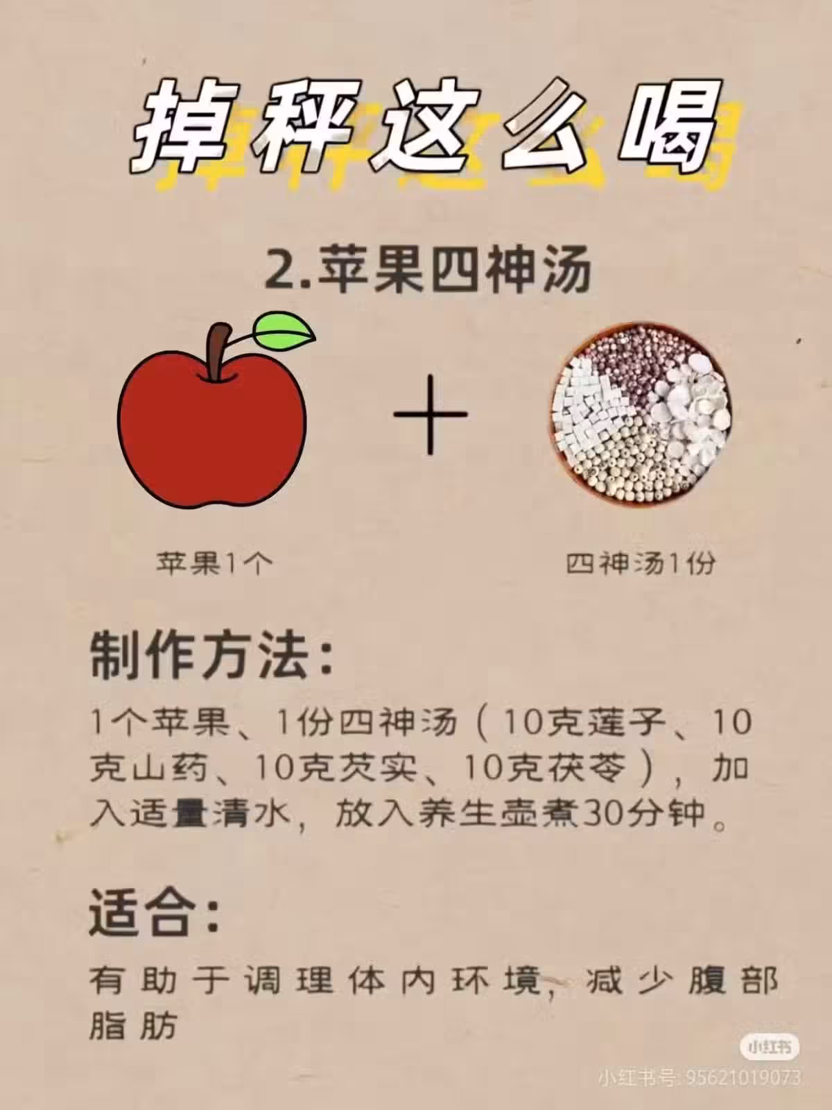 蘋果四神湯:調理體內環境,減少腹部脂肪。