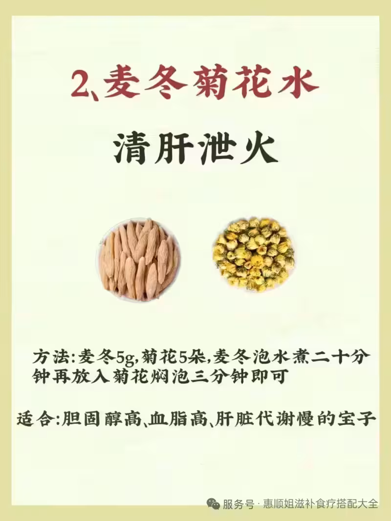 2、清肝熱:麥冬菊花水