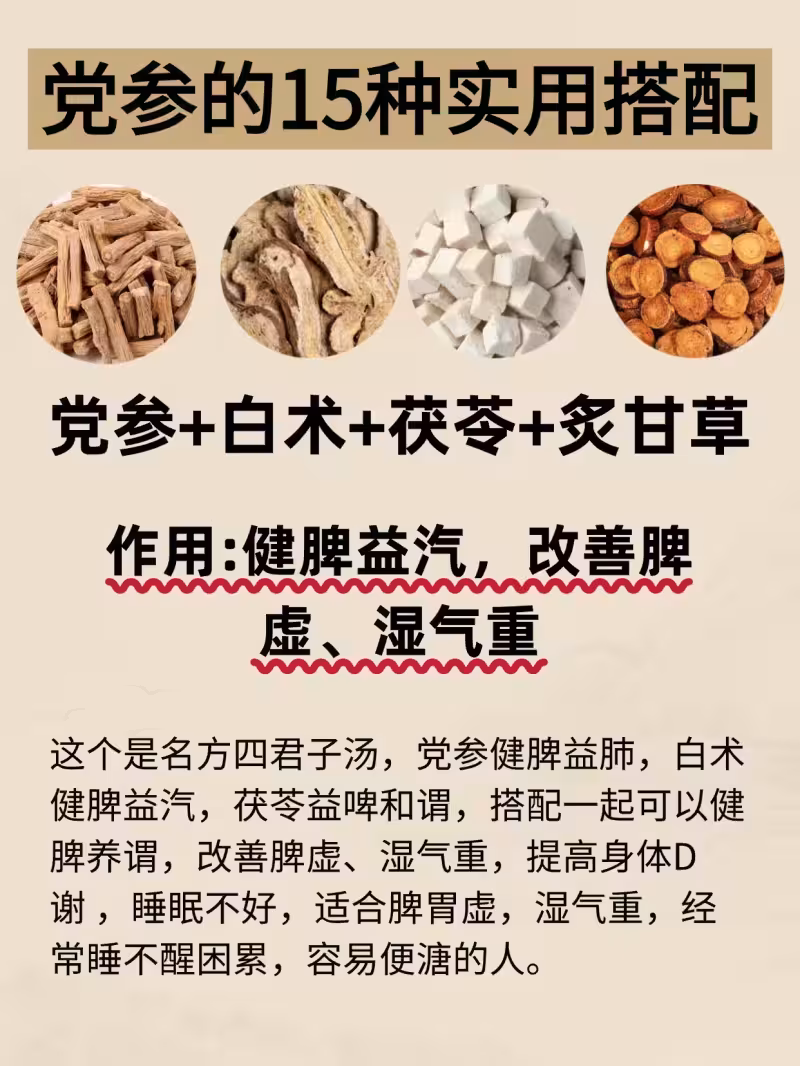 ⓫8克黨參+10克白朮+8克茯苓+3克炙甘草