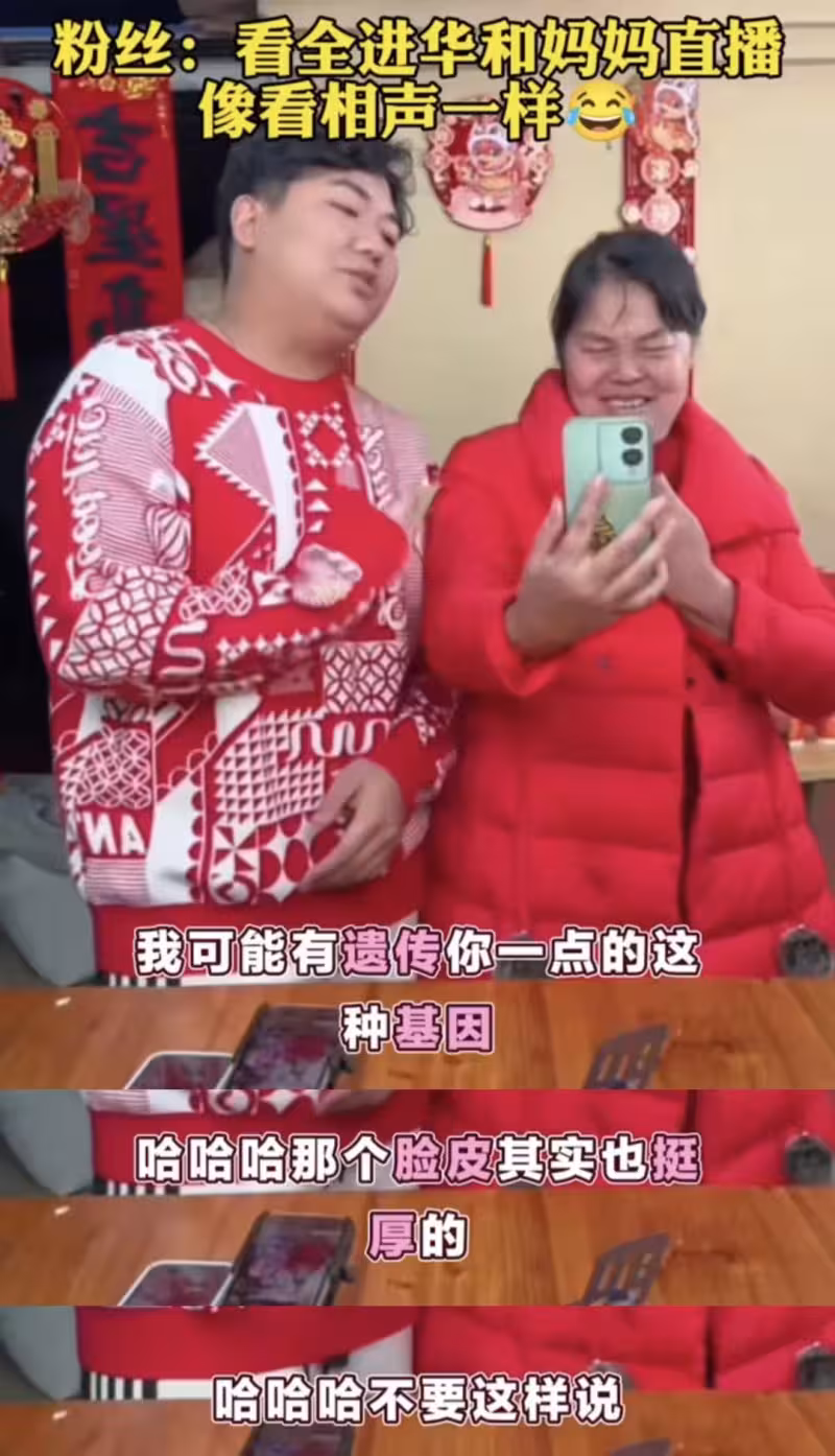 全進華就在直播中,調侃自己遺傳了老媽的厚臉皮。