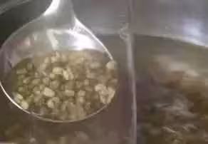 如果剛買回綠豆就想喝綠豆湯,來不及凍綠豆,我們可以將洗乾淨的綠豆直接放入鍋中炒一下,水分炒干後直接在鍋里加入冷水。熱綠豆遇到涼的水,加快了綠豆表皮的破裂。等水開之後,再煮2分鐘綠豆也被煮開花了! 另外,白米粥、小米粥都可以用這個方法喲~煮出來的粥又滑有綿綢!!