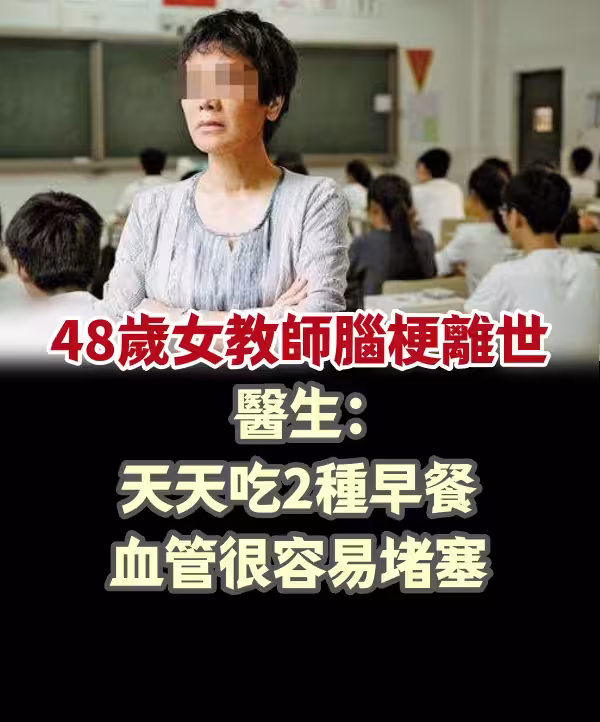 48歲女教師腦梗離世,醫生:天天吃2種早餐, 血管很容易堵塞!