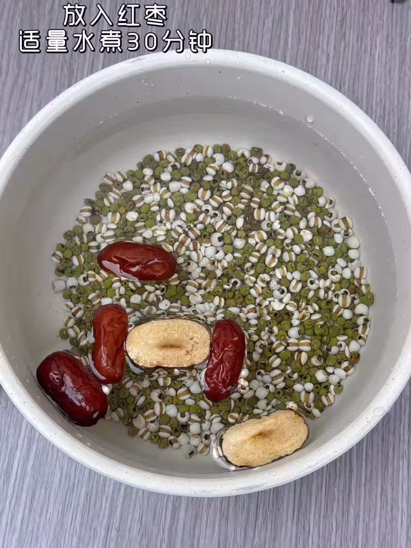 2⃣️加入幾片切好的紅棗,加入適量清水煮30分鐘