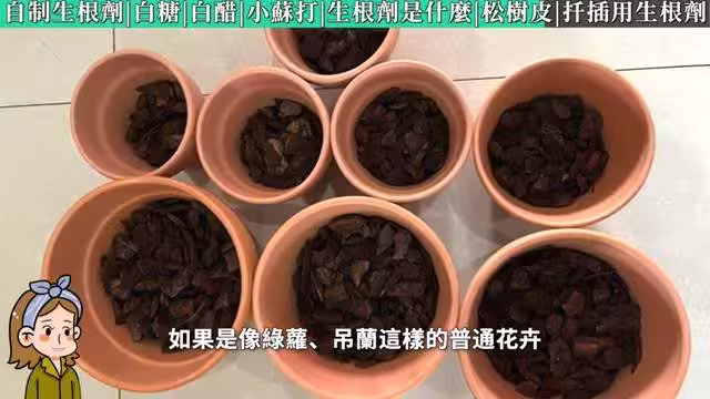 盆花卉的土壤中混入10%~20%的松樹殼碎片。