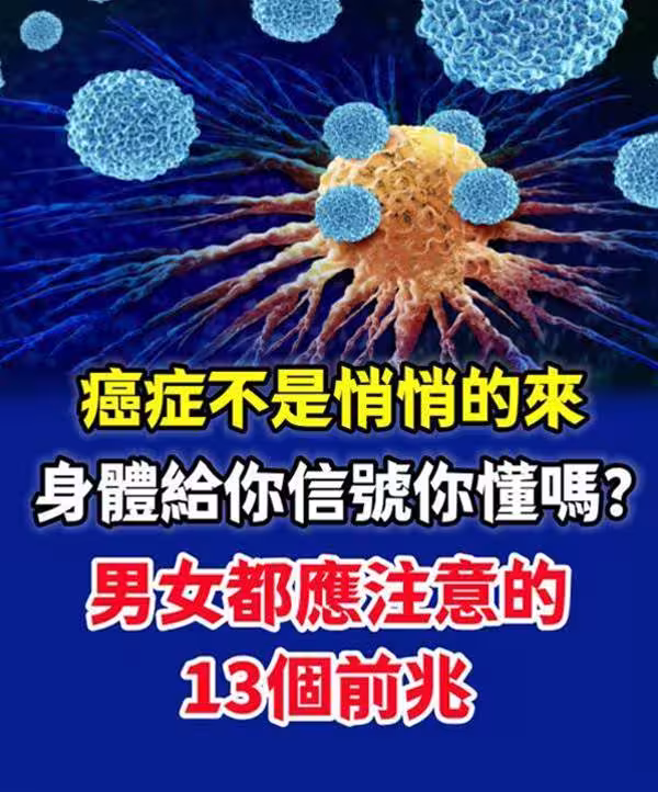 癌症不是悄悄的來,身體給你信號你懂嗎? 男女都應注意的13個前兆!