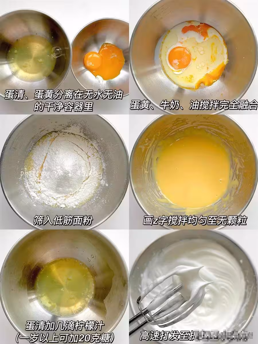 3️⃣ 把蛋白霜和蛋黃糊混合,快速抄底翻拌均勻,再加入切碎的蔓越莓干輕輕拌勻。