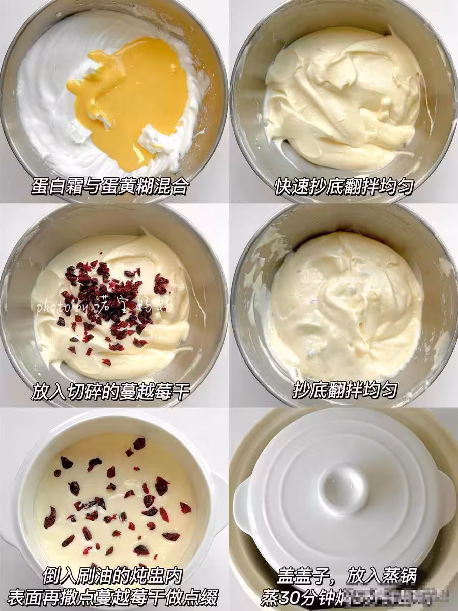 蒸出來的蛋糕口感濕潤鬆軟,蔓越莓的酸甜讓口味更有層次。蒸製方式保留了食材的營養,吃起來更健康,也適合給孩子做輔食。自己做的蛋糕無添加,香甜不膩,比買的更放心!