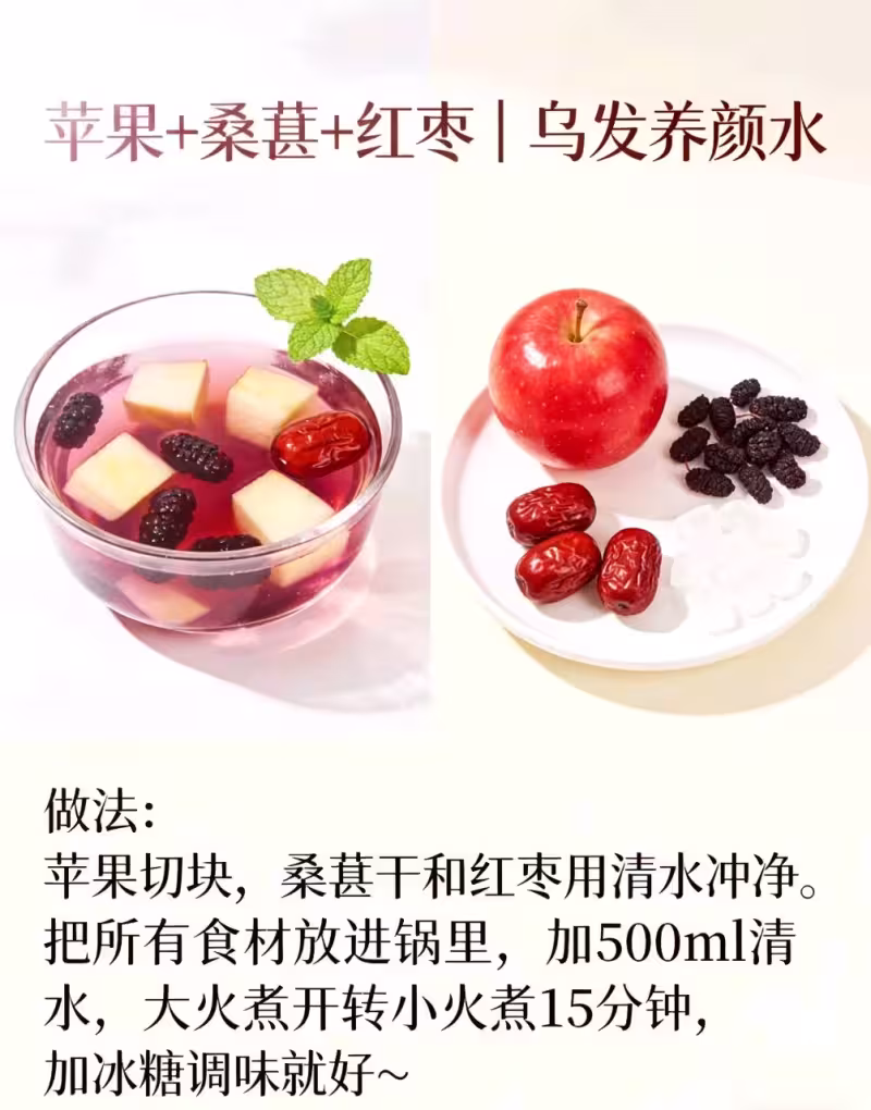 8. 蘋果+桑葚+紅棗|烏髮養顏水