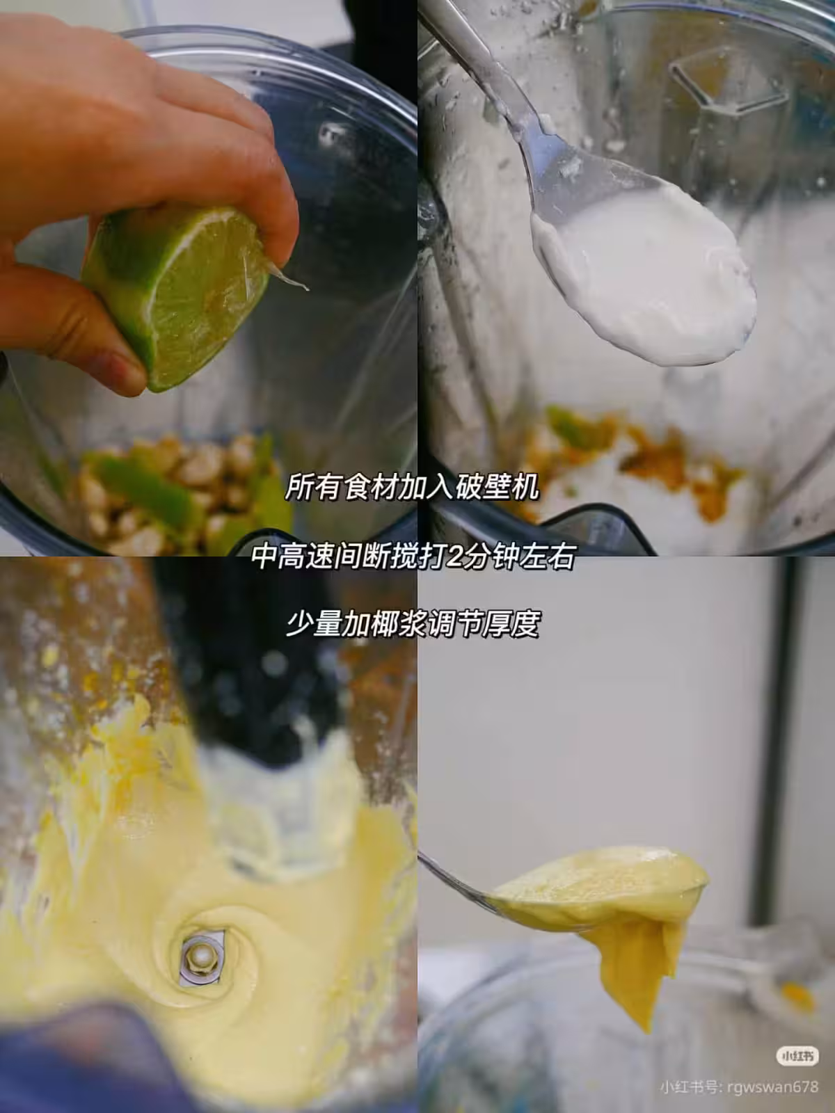 3、嘗試酸甜和濃稠度(用椰漿少量加入調到不流動但柔軟絲滑的厚度);