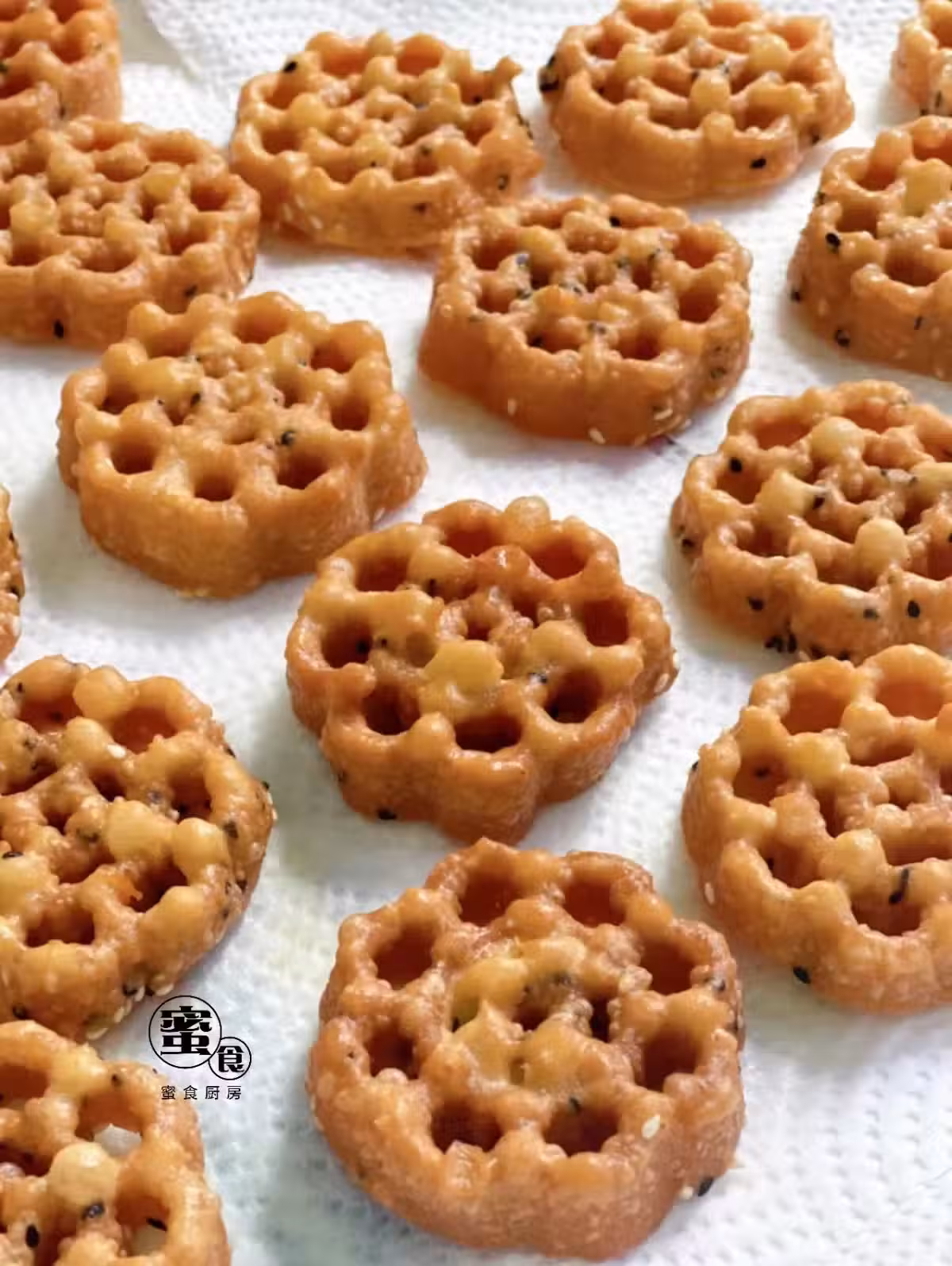 1)炸好後的蜂巢餅是會有點軟的 , 待涼後就會變酥 脆了。