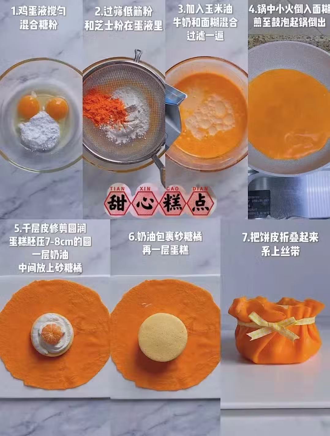 7)把餅皮摺疊起來繫上絲帶