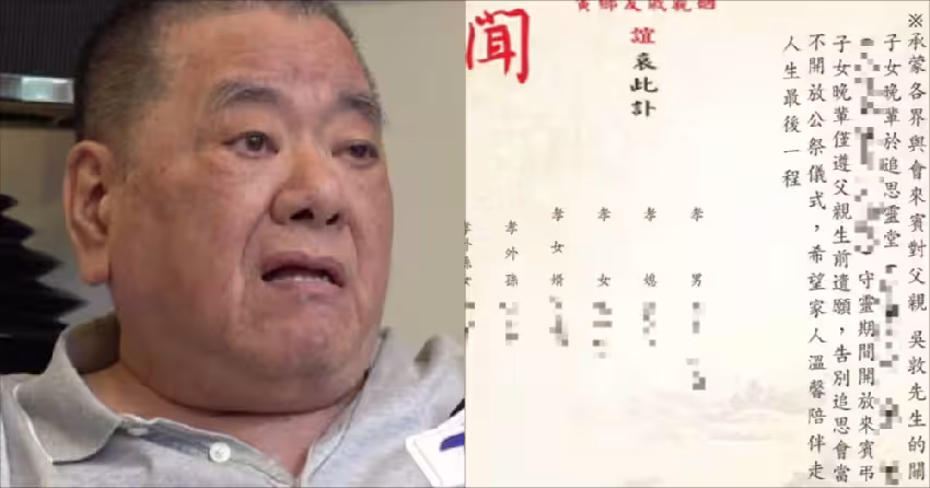 快訊/訃聞曝光!影劇大亨吳敦逝世,享壽77歲!