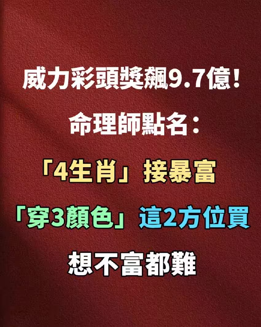 🔥 威力彩頭獎狂飆 9.7 億!命理師點名「4 生肖」接暴富能量,穿對 3 顏色、鎖定這 2 方位買,財運直接被打開!