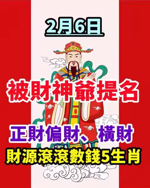 2月6日被財神爺提名,正財偏財、橫財,財源滾滾數錢的5生肖!!