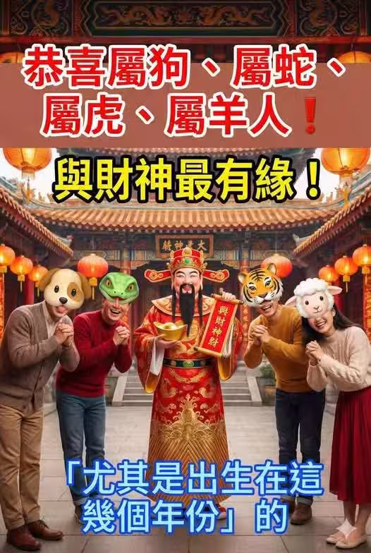 恭喜4大生肖 【屬狗、屬蛇、屬虎、屬羊】與財神最有緣「尤其是出生在這幾個年份」的