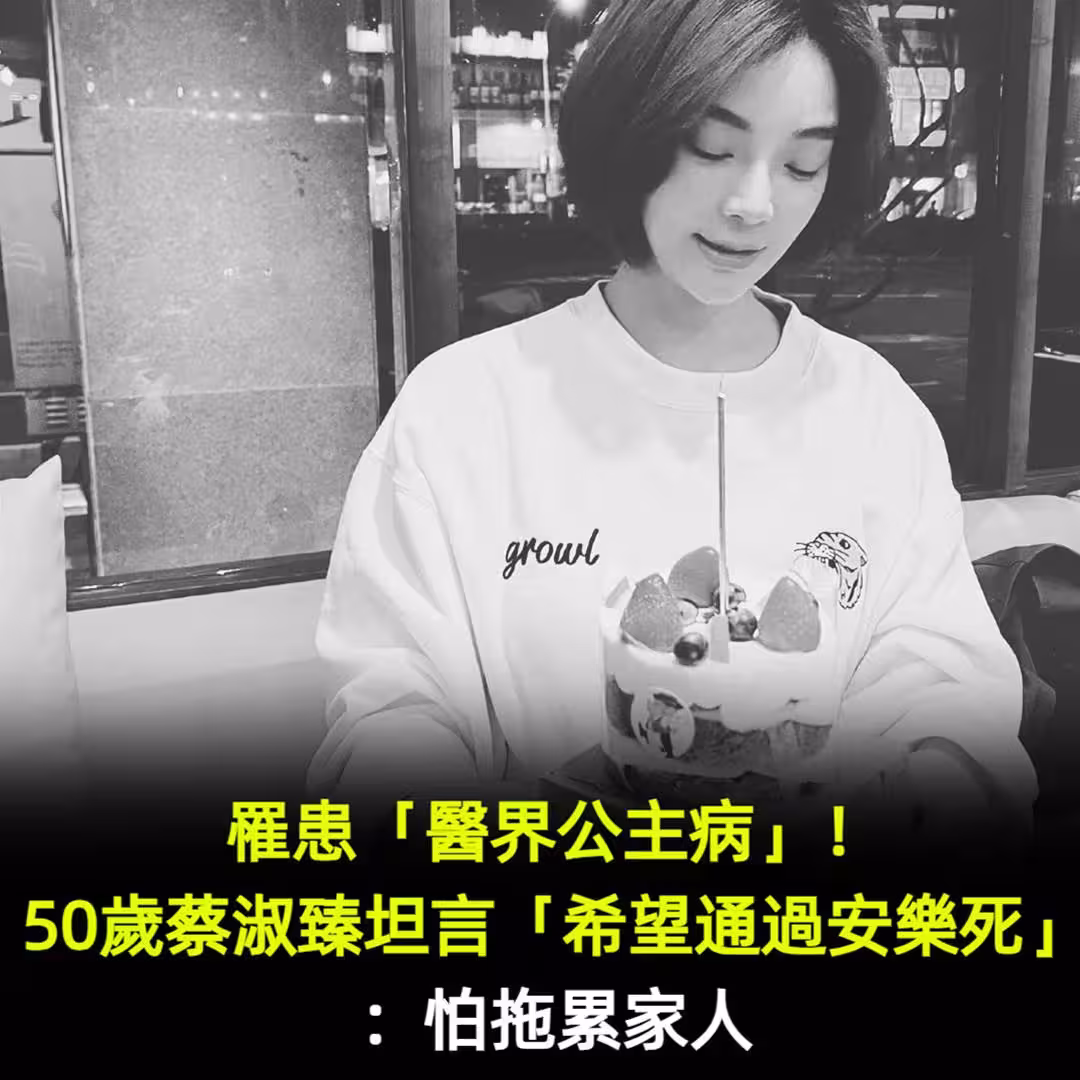 認罹「醫界公主病」消失1年!知名女星苦盼「台灣通過安樂死」病況曝光 「坦承怕拖累家人」喊話老後堅持不賴活!!