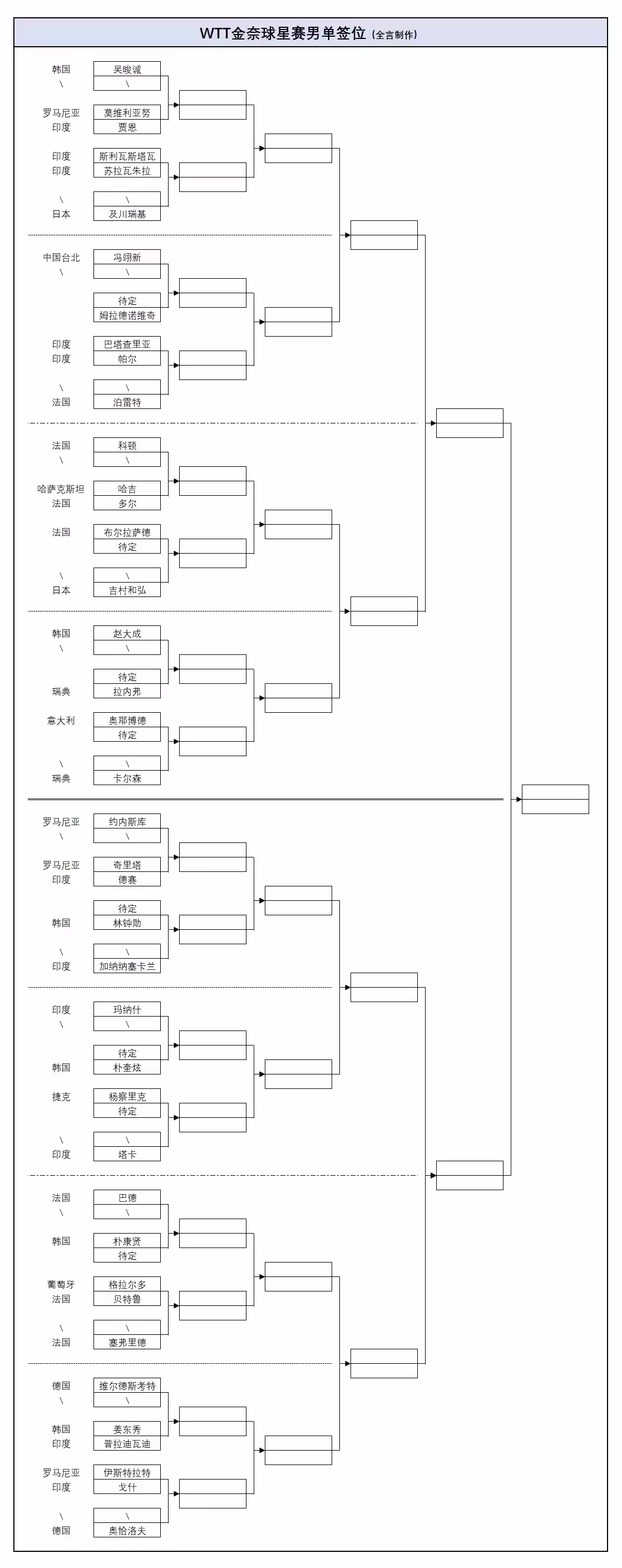 WTT印度賽:男單簽位公布!2位世界冠軍不同區,韓國小將領銜出戰