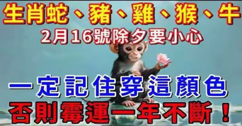 生肖蛇、豬、雞、猴和牛,是這些典型生肖中的代表,在這一天尤需留意。