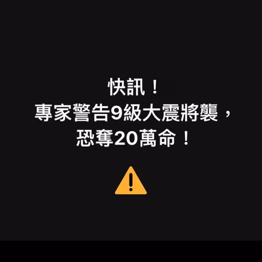 快訊!!! 專家警告9級大震將襲, 恐奪20萬命