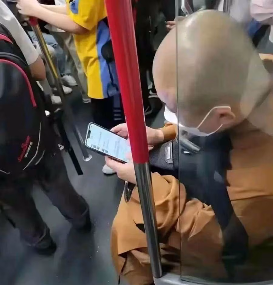 這些壁畫色彩斑斕,線條流暢,仿佛在小小的螢幕中煥發出了無限的生命力。和尚時而停下細細端詳,時而微微點頭,臉上掛著一種虔誠而專注的神情。那一刻,我恍然明白,他並不是在「玩」手機,而是藉助這科技的載體,遊歷在佛教文化的浩瀚長河之中。