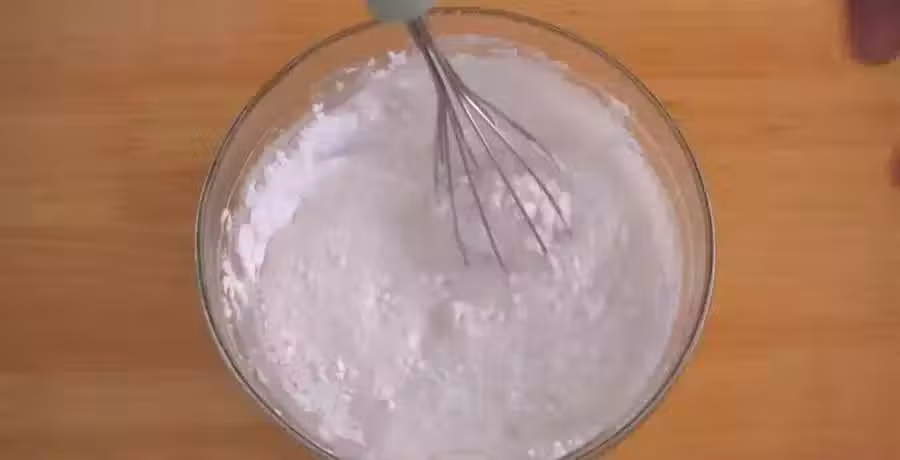 把糯米粉加玉米澱粉,加綿白糖和鮮牛奶,混合成一個比較稀的麵糊。