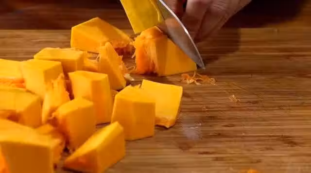 2、 蒸鍋中放入南瓜,隔水蒸熟。