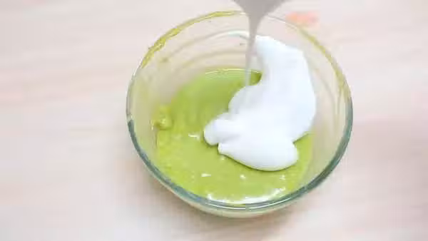 5. 倒入模具中,然後放入已預熱180度的烤箱中,烤20-25分鐘。可用牙籤在麵糊上晝圈圈,減少氣泡。