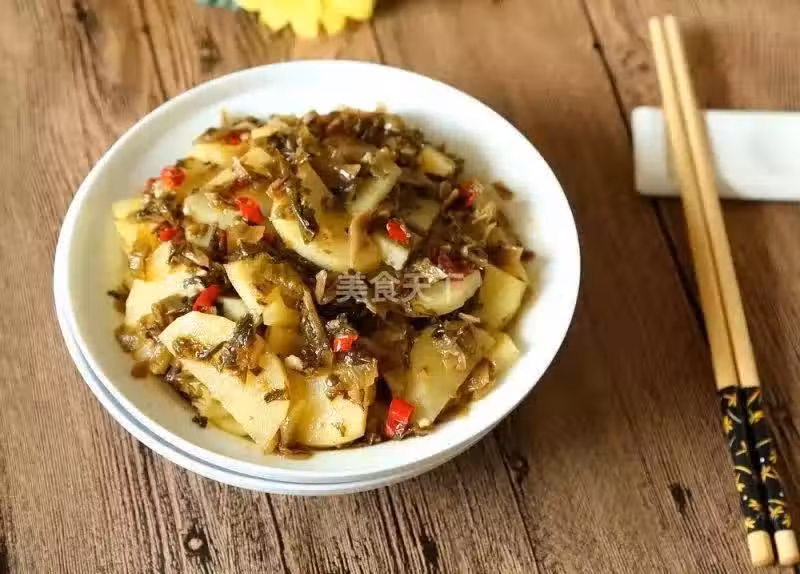 5. 放入酸菜翻炒,加入少許水蓋蓋燒至熟