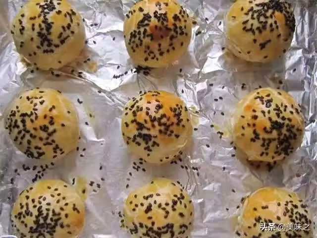17、表面刷一層蛋黃液,然後撒上適量的黑芝麻。