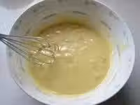 6.把蛋白從冰箱裡取出,加入3滴檸檬汁和一小勺細砂糖,用電動打蛋器以低速打散蛋白(隻需5秒左右)後改為高速打發,約2至2.5分鐘,打發至濃稠後加入剩下細砂糖的一半,繼續以高速打發至體積膨大,表面可以短時間保持紋路時加入剩餘的細砂糖,打發至提起打蛋器會出現小而直立的尖角。