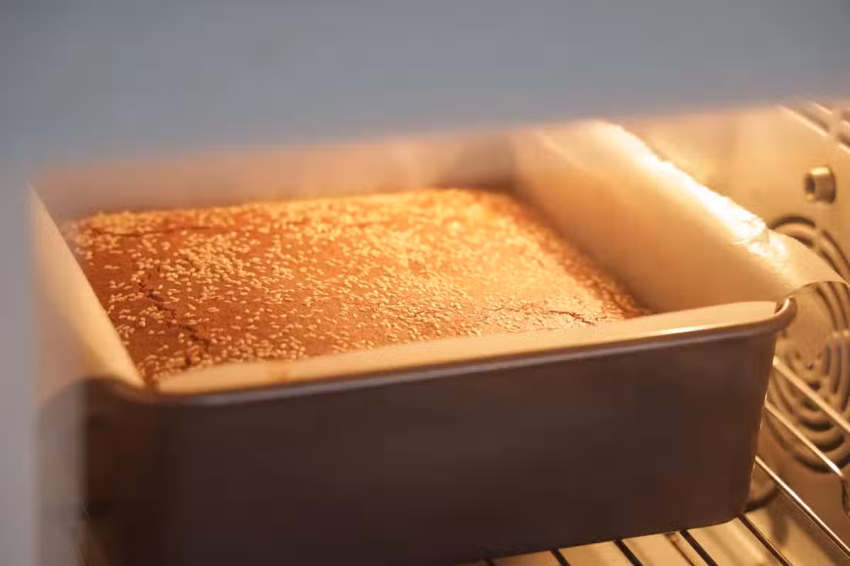 12、用牙籤試下,沒有帶出麵糊就是熟透了。轉移到涼網上,撕掉油紙,放涼再切塊。切成自己喜歡的大小就可以。