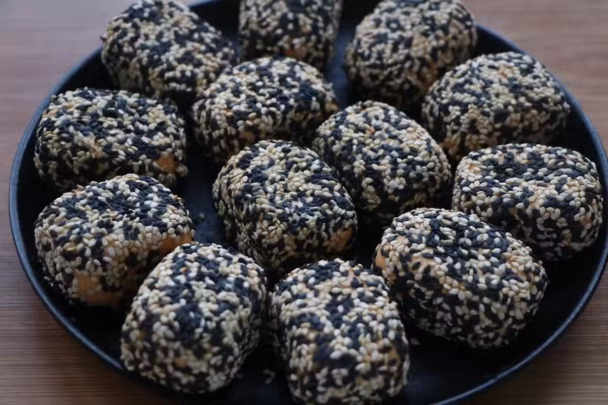 9、平底鍋刷一層植物油,把餅胚放進去,中小火慢煎,煎至六面金黃色即可;