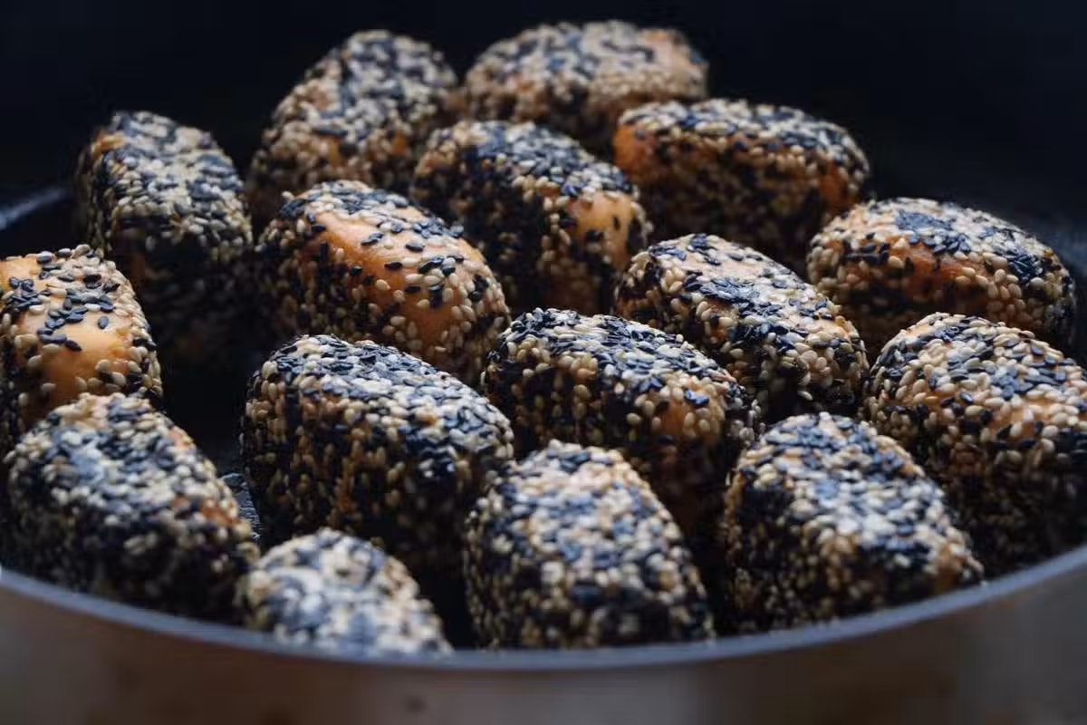 10、我們的紅薯糯米餅就做好了,香甜軟糯,表面沾滿了芝麻,有濃濃的芝麻香味,內餡還有甜甜的豆沙,真的太好吃了!