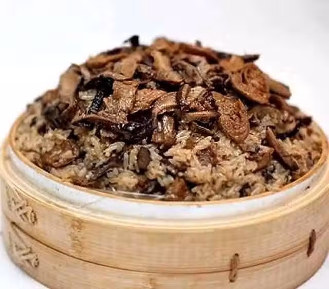 素食的油飯配料很簡單,就只有薑跟百頁豆腐以及香菇即可,但素食油飯的香氣來自於老薑的功勞,所以老薑要爆很香就會很成功喔,另外糯米與白米的比例,3.5杯糯米配1.5杯白米的比例最剛好,不會太軟也不會太硬,如果覺得配料不夠,可以自行增加像是花生就很對味喔~