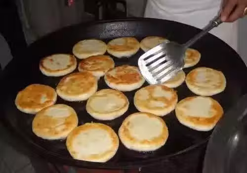 製法:將面加少許鹽和鹼用溫水和成麵糰揉勻餳約30分鐘,將餳好的麵糰搓成長條,用抻面的方法,抻成細麵條,刷上油分成10份,再將每份盤起來稍按成圓餅,平鍋上火,燒熱淋入油放入餅用中火烙至上色時油煎至棗紅色取出用凈熱溫布包上燜一燜(上屜蒸一分就好)打開用手搓開即可。
