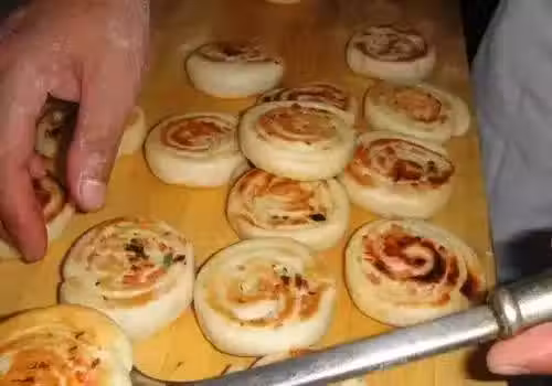 工藝流程:和面(湯麵)---下擠---制皮---上餡---成型---成熟。