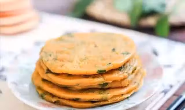 6. 平底鍋刷一層薄油,倒入適量麵糊,小火煎至底部定型,輕輕翻面,煎至兩面金黃即可。同理做好剩餘的小餅。