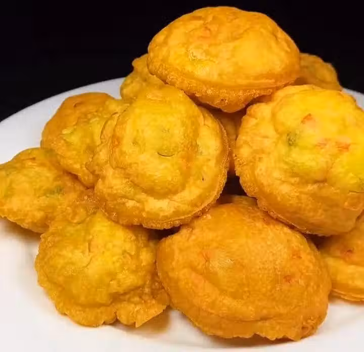 5、按上面的方法將所有的麵糊做完,全程中火,炸至色澤金黃,撈出控油,然後直接出鍋裝盤,雞蛋泡泡以後就像我這樣做,蓬鬆香軟還好吃。