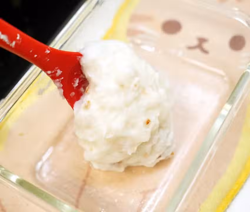 ▼將在來米糊壓一壓、均勻鋪平,讓底部、側邊的孔隙也填滿,等等蒸完也會比較漂亮!