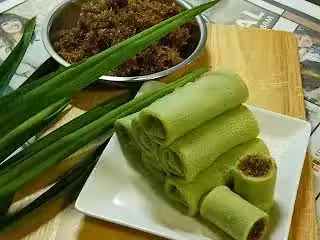 麵粉 180克、鹽 1/3茶匙、雞蛋 2個 (我放1粒)、Pandan汁 350克(十幾片的pandan葉打成pandan汁)、Pandan香精 2滴(如果需要更上色)