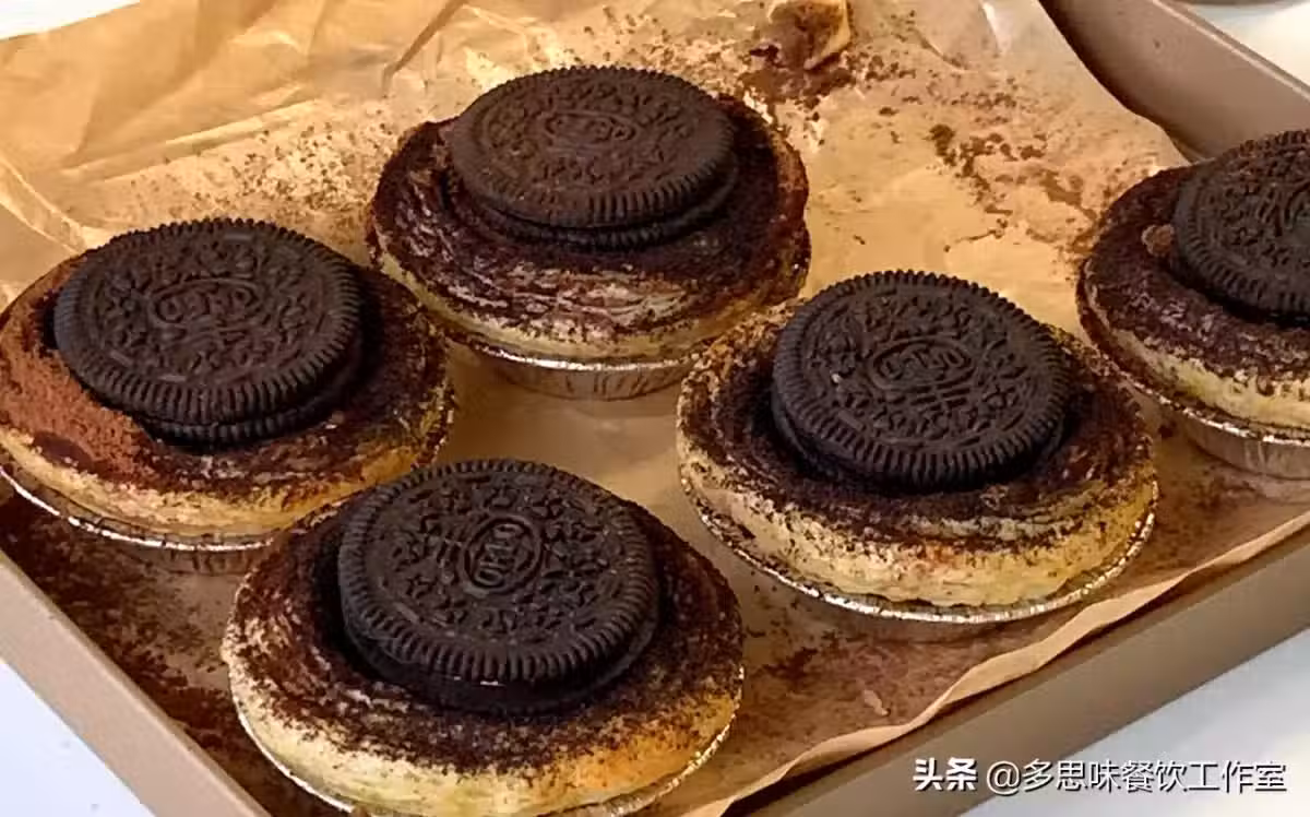 4出爐後塗上巧克力醬,撒可可粉(我用的是無糖噠),最後放上奧利奧