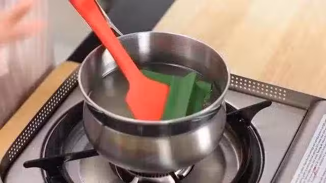 加入 15g 細砂糖和一截香蘭葉,加熱至砂糖融化, 4008 椰汁沸騰