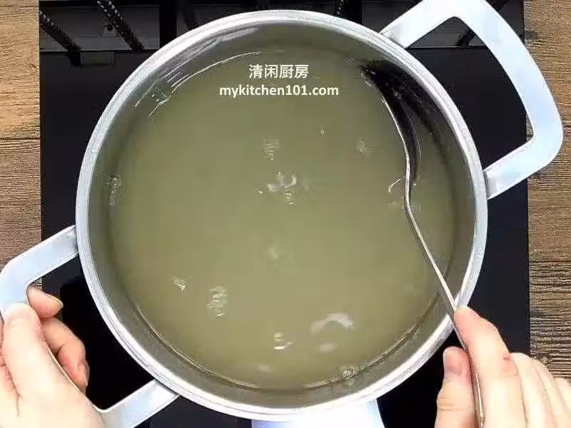 3 轉至中火,繼續煮至燕菜粉完全融化。