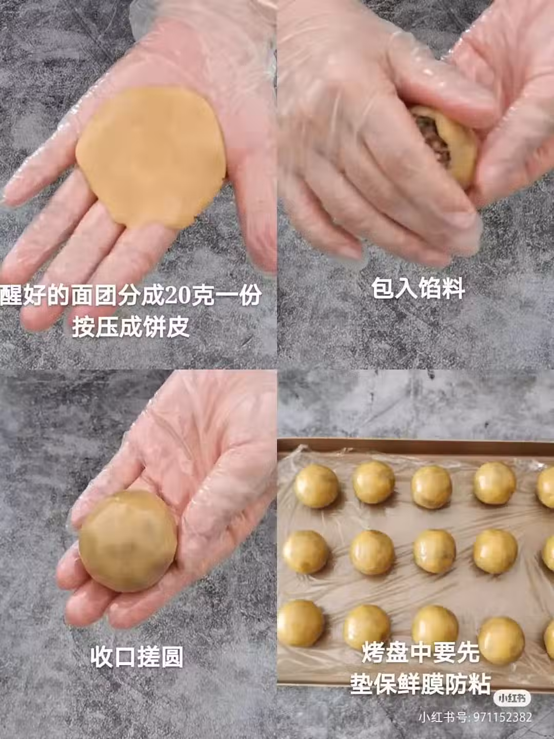 8]再揉搓成橢圓形,放入月餅模具中(搓成橢圓形可防止放入模具時被模具的邊刮到);